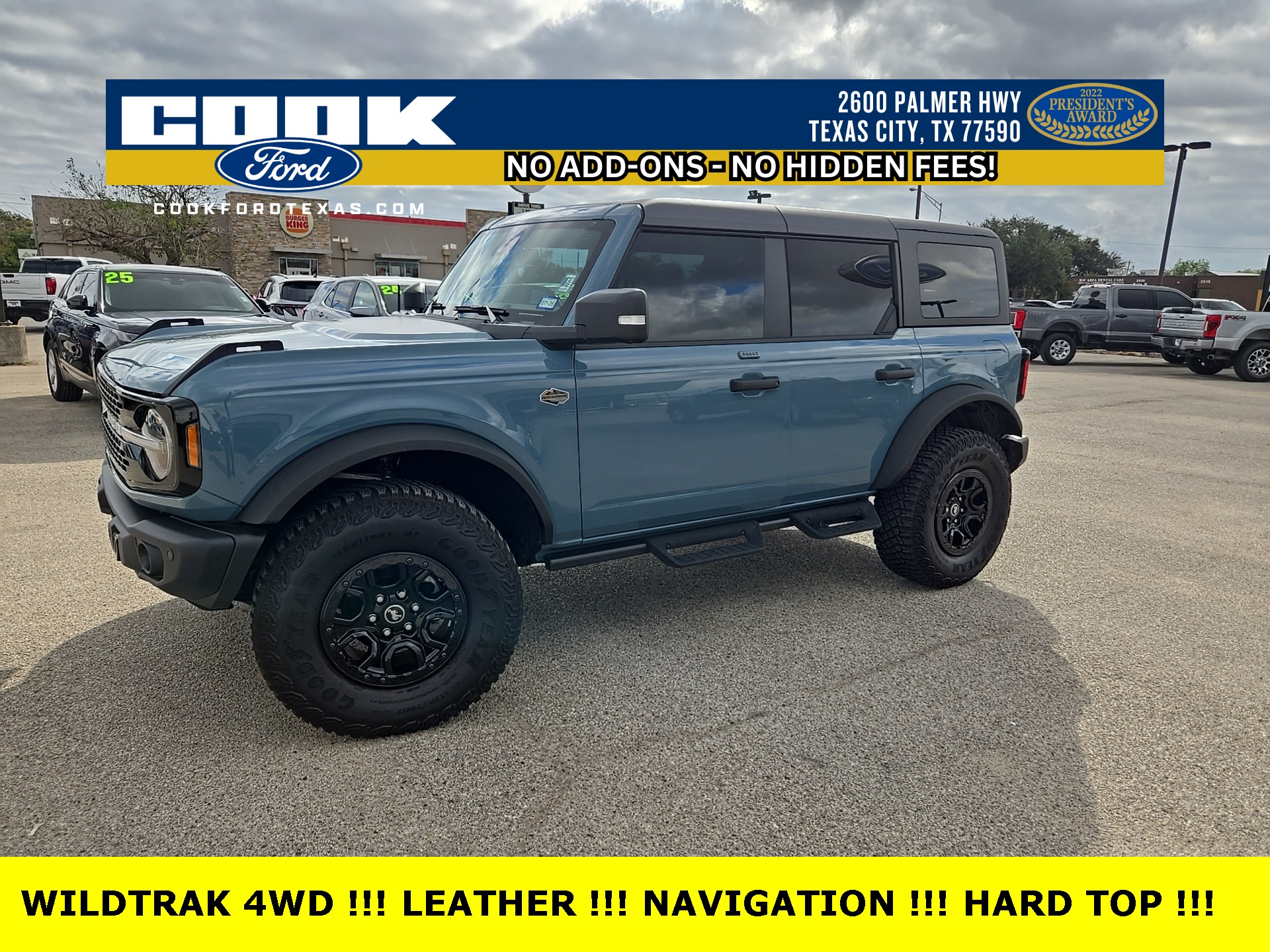 Area 51 2023 Ford Bronco 4WD 10-Speed Automatic 2.7L EcoBoost® V6 12″ LCD Capacitive Touchscreen w/Swipe Capability, 360-Degree Camera, Additional Sound Deadening, Equipment Group 353A High Package, Front Parking Sensors, Information on Demand Panel, Navigation System, Sideview Mirrors, Towing Capability.