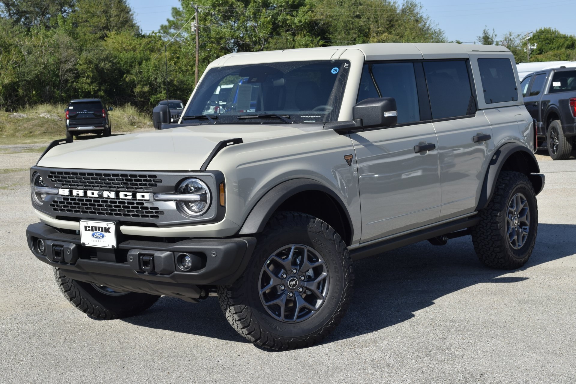This 2025 Ford Bronco Badlands in Desert Sand comes with the following features: 2.7L EcoBoost® V6 10-Speed Automatic 4WD Equipment Group 334A Lux Package (Connected Navigation), 4-Wheel Disc Brakes, 4.7 Axle Ratio, 7 Speakers, ABS brakes, Air Conditioning, Alloy wheels, AM/FM radio: SiriusXM with 360L, AM/FM Stereo, Auto High-beam Headlights, Auto-dimming Rear-View mirror, Body Color-Painted Hard Top, Brake assist, Compass, Delay-off headlights, Driver door bin, Driver vanity mirror, Dual front impact airbags, Dual front side impact airbags, Electronic Stability Control, Emergency communication system: 911 Assist, Exterior Parking Camera Rear, Front anti-roll bar, Front Bucket Seats, Front Center Armrest, Front fog lights, Front reading lights, Front wheel independent suspension, Fully automatic headlights, Hard Top Sound Deadening Headliner, Heated door mirrors, Heated Front Seats, Heated steering wheel, Illuminated entry, Integrated roll-over protection, Leather Shift Knob, Leather-Trimmed/Vinyl Bucket Seats, Low tire pressure warning, Marine Grade Vinyl Heated Bucket Seats, Occupant sensing airbag, Outside temperature display, Overhead airbag, Overhead console, Panic alarm, Passenger door bin, Passenger vanity mirror, Power door mirrors, Power steering, Power windows, Radio data system, Rear-Window Defroster & Washer, Remote keyless entry, Security system, SiriusXM w/360L, Speed control, Split folding rear seat, Steering wheel mounted audio controls, SYNC® 4, Tachometer, Telescoping steering wheel, Tilt steering wheel, Traction control, Trip computer, Variably intermittent wipers, and Voltmeter. Rebates subject to geographical qualification. Price includes: *Manufacturer’s Rebates shown above are subject to residency restrictions. Any customer not meeting the residency restriction will receive a dealer discount in the same amount of the manufacturer rebate.$2500 – Retail Bonus Cash. Exp. 11/19/2025