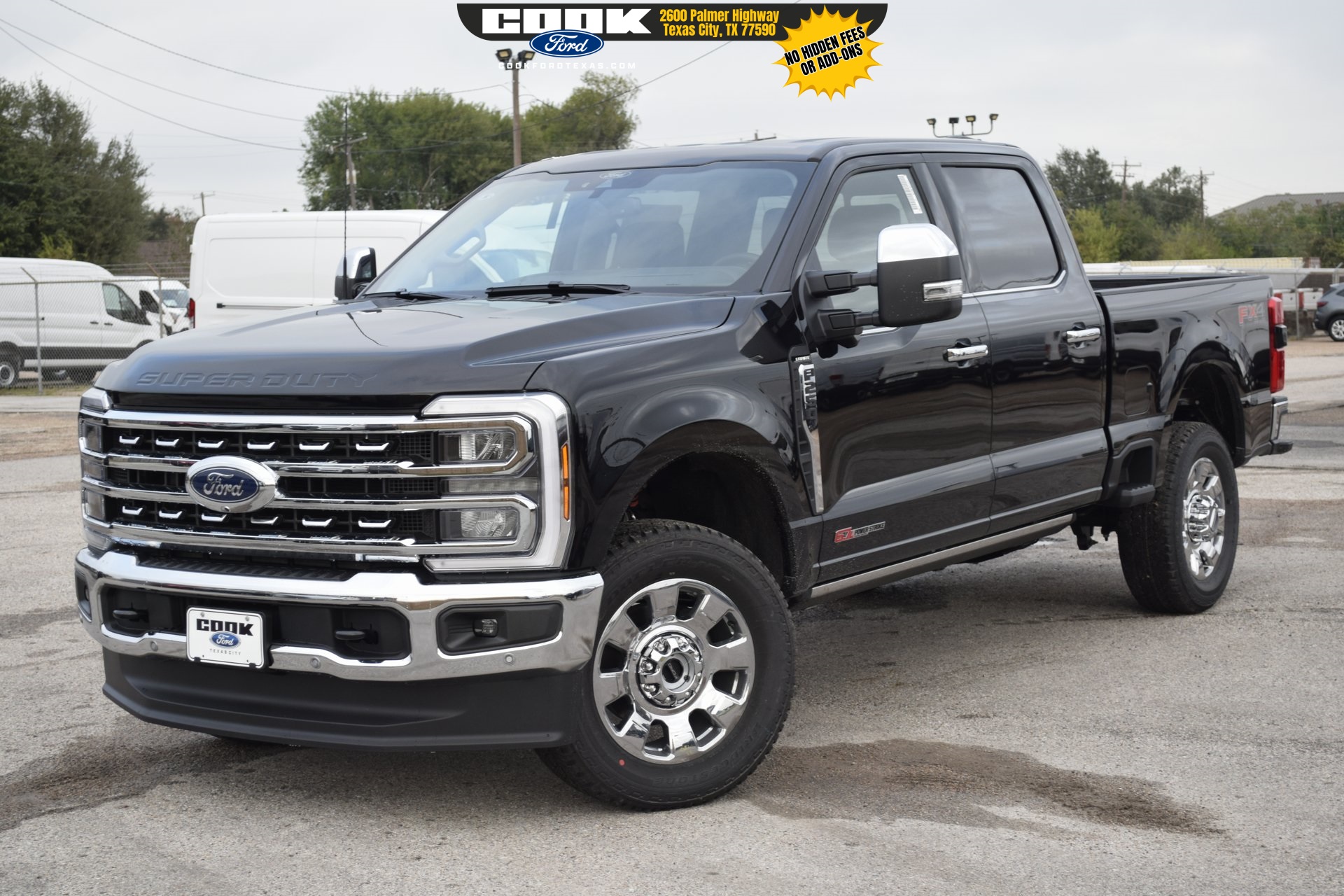 This 2026 Ford F-250SD LARIAT in Agate Black Metallic comes with the following features: 6.7L High Output Power Stroke V8 Diesel 10-Speed Automatic 4WD Chrome Package (6″ Angular Bright Anodized Step Bars, Chrome Door Handles, Chrome Exhaust Tip, Unique Chrome Mirror Caps, and Wheels: 20″ Chrome PVD Aluminum), F-250 >10K GVWR Package, Ford Connectivity Package (1-Year Included), FX4 Off-Road Package (Hill Descent Control, Off-Road Specifically Tuned Shock Absorbers, and Unique FX4 Off-Road Box Decal), Internet access capable: 5G Modem – Ford Connectivity Package, LARIAT Premium Package (Lane Departure Warning System, Power-Sliding Rear-Window w/Defrost, Privacy Glass, Pro Trailer Backup Assist, and Pro Trailer Hitch Assist), LARIAT Ultimate Package (4-Way Adjustable Headrests, Head-Up Display, Power-Deployable Running Boards, Radio: B&O Unleashed Sound System by Bang & Olufsen, SiriusXM w/360L, SYNC® 4 w/Enhanced Voice Recognition, and Tailgate Step & Handle), 4-Wheel Disc Brakes, 8 Speakers, ABS brakes, Adaptive Cruise Control w/Stop-and-Go, Adjustable pedals, Air Conditioning, Alloy wheels, AM/FM radio: SiriusXM with 360L, Auto High-beam Headlights, Auto-dimming Rear-View mirror, Automatic High Beam, Automatic temperature control, BLIS w/Cross-Traffic Alert, Brake assist, Bumpers: chrome, Compass, Delay-off headlights, Driver door bin, Driver vanity mirror, Dual front impact airbags, Dual front side impact airbags, Electronic Stability Control, Emergency communication system: SYNC® 4 911 Assist, Engine Block Heater, Flow-Through Console, Ford Connectivity Pack (One-Time Purchase – 7 Yrs), Front & Rear Parking Sensors, Front ActiveX Trimmed 40/Console/40 Seats, Front anti-roll bar, Front Bucket Seats, Front Center Armrest, Front dual zone A/C, Front fog lights, Front reading lights, Fully automatic headlights, Garage door transmitter, Heated door mirrors, Heated Front Seats, Heated rear seats, Heated steering wheel, Illuminated entry, Lane-Keeping System, Low tire pressure warning, Memory seat, Navigation system: Connected Navigation, Outside temperature display, Overhead airbag, Overhead console, Panic alarm, Passenger door bin, Passenger vanity mirror, Pedal memory, Post-Collision Braking, Power door mirrors, Power driver seat, Power passenger seat, Power steering, Power windows, Pre-Collision Assist, Radio: B&O Sound System by Bang & Olufsen, Rain sensing wipers, Rear Parking Sensors, Rear reading lights, Rear seat center armrest, Rear step bumper, Rear window defroster, Remote keyless entry, SecuriCode™ Keyless Entry Keypad (Driver’s Side), Security system, Speed control, Split folding rear seat, Steering wheel mounted audio controls, Tachometer, Telescoping steering wheel, Tilt steering wheel, Traction control, Trip computer, Turn signal indicator mirrors, Upfitter Switches (6), Variably intermittent wipers, Ventilated front seats, and Wheels: 18″ Bright Machined & Carbonized Gray Alum.