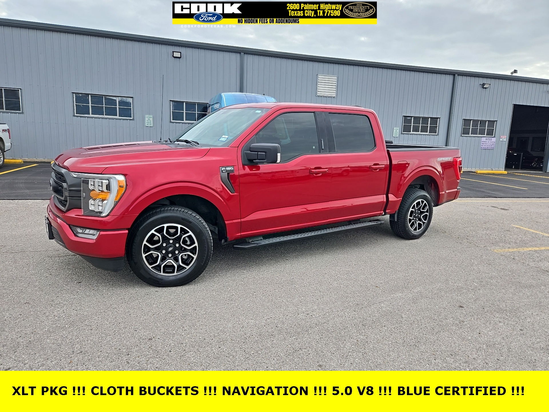 Certified. Rapid Red Metallic Tinted Clearcoat 2021 Ford F-150 XLT RWD 10-Speed Automatic 5.0L V8 10-Way Power Driver & Passenger Seats, 3.15 Axle Ratio, 8″ Productivity Screen in Instrument Cluster, Accent-Color Step Bars, Black 2-Bar Style Grille w/Black Surround/Accents, Body-Color Door & Tailgate Handles, Body-Color Front & Rear Bumpers, Box Side Decals, Chrome Single-Tip Exhaust, Class IV Trailer Hitch Receiver, Dual Zone Automatic Temperature Control, Equipment Group 302A High, Heated Front Seats, Intelligent Access w/Push Button Start, Leather-Wrapped Steering Wheel, LED Box Lighting w/Zone Lighting, LED Reflector Headlamps, LED Sideview Mirror Spotlights, Onboard 400W Outlet, Power Glass Heated Sideview Mirrors, Rear Under-Seat Storage, Remote Start System w/Remote Tailgate Release, SYNC® 4 w/Enhanced Voice Recognition, Unique Sport Cloth 40/Console/40 Front-Seats, Wheels: 18″ 6-Spoke Machined Aluminum, XLT Chrome Appearance Package, XLT Sport Appearance Package.